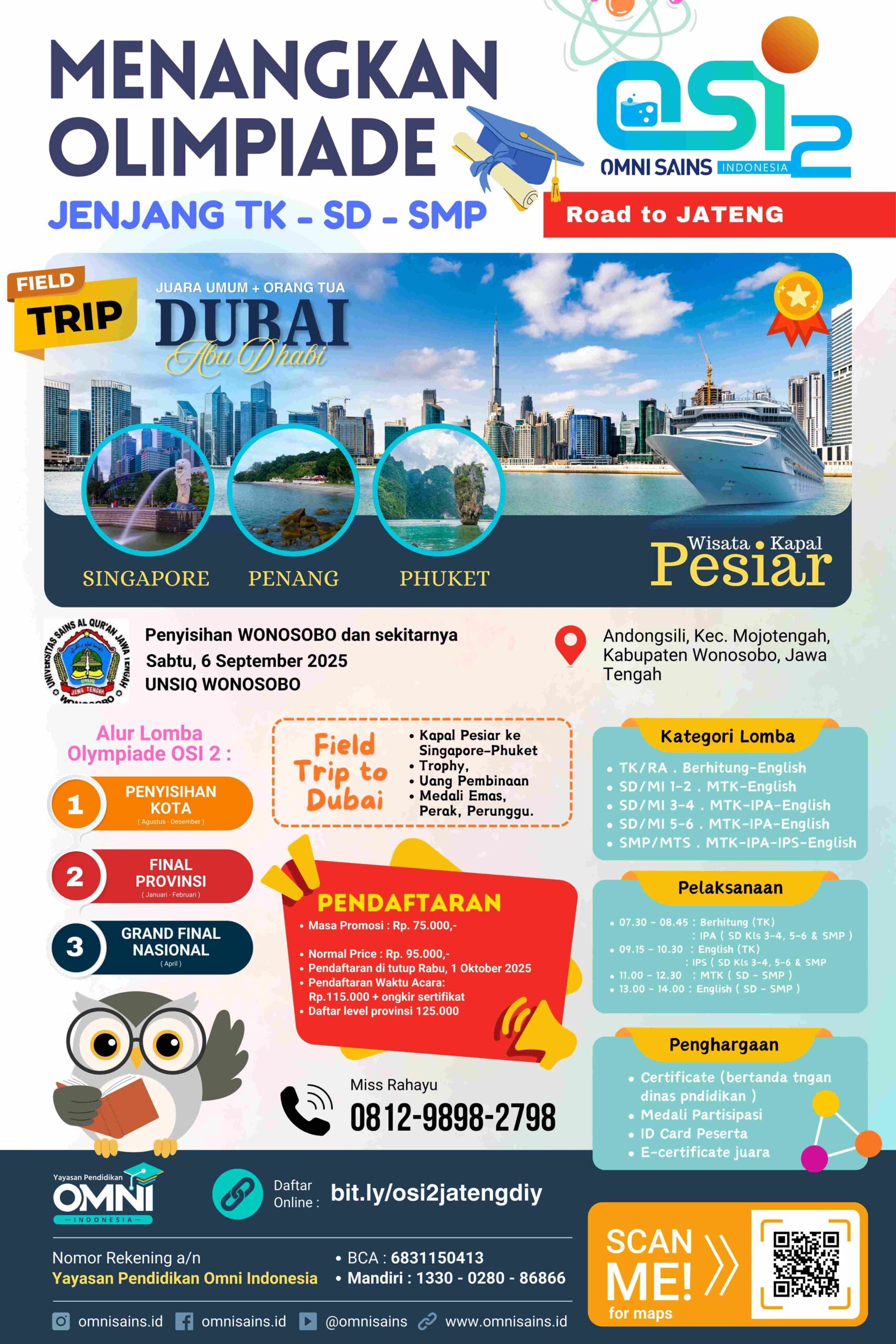 Untuk OSI 2 ini - juara umum di ajak ke Dubai - bukan saja peserta sendiri - tetapi bahkan dengan 1 orang pendamping. Dan tentu saja juga mendapatkan uang pembinaan.